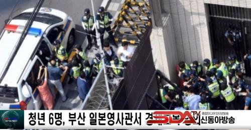 ¿À´Ã(22ÀÏ) ¿ÀÈÄ 2½Ã 35ºÐÂë ºÎ»ê µ¿±¸ ÀϺ»¿µ»ç°ü¿¡¼ ´ëÇлýÀ¸·Î º¸À̴ û³â 6¸íÀÌ ¿µ»ç°ü ¸¶´ç¿¡¼ ÃÖ±Ù ÀϺ»ÀÇ °æÁ¦º¸º¹À» ±ÔźÇÏ´Â ³»¿ëÀÇ Ç÷¡Ä«µå ÆîÄ¡°í ¡®ÀϺ»Àº »çÁËÇÏ¶ó¡¯ µî ±¸È£¸¦ ¿ÜÄ¡´Ù °æÂû¿¡ ºÙÀâÇû½À´Ï´Ù.