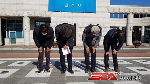 ÁøÁÖ ÀÌ¡¤ÅëÀå ÇùÀÇȸ ´ëÇ¥ 4¸íÀº À̳¯ ÁøÁÖ½Ãû ¾Õ¿¡¼ ±âÀÚȸ°ßÀ» ¿°í "Á¦ÁÖµµ ´Üü ¿¬¼ö·Î ÀÎÇÑ Äڷγª19 Áý´Ü°¨¿°°ú È®»êÀ¸·Î ÁøÁֽùΰú Á¦ÁÖµµ¹Î ¿©·¯ºÐ, ±¹¹Î ¿©·¯ºÐ²² ¸Ó¸® ¼÷¿© »çÁËÇÑ´Ù"°í ¸»Çß½À´Ï´Ù.