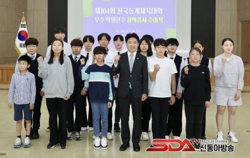 [½Åµ¿¾Æ¹æ¼Û Àü³²=À̽ŵ¿±âÀÚ] Àü¶ó³²µµ±³À°Ã» ±è´ëÁß ±³À°°¨ ÀÌ 5¿ù 11ÀÏ(¸ñ) û»ç ´ëȸÀǽǿ¡¼­ Àü±¹µ¿°èüÀ°´ëȸ ¿ì¼ö Çлý¼±¼ö¿¡°Ô ÀåÇÐÁõ¼­¸¦ ¼ö¿©Çß½À´Ï´Ù.