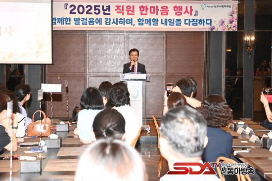 [½Åµ¿¾Æ¹æ¼Û °æ³²ÁøÁÖ=³²±Ã¿µ±â±âÀÚ] ÁøÁֽú¹ÁöÀç´ÜÀº 8ÀÏ Á¦À̽ºÄù¾îÈ£ÅÚ 4Ãþ ¿¬È¸Àå¿¡¼­¡®2025³â Á÷¿ø ÇѸ¶À½ Çà»ç¡¯¸¦ °³ÃÖÇØ Àç´Ü °ü°èÀÚ¿Í 8°³ ¼öŹ¿î¿µ½Ã¼³ Àü Á÷¿ø µî ¾à 100¸íÀÌ Âü¼®ÇÑ °¡¿îµ¥ ¼ÒÅë°ú È­ÇÕÀÇ ÀåÀ» ¿­¾ú´Ù.
