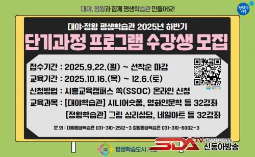 [½Åµ¿¾Æ¹æ¼Û ½ÃÈï½Ã=À̽ŵ¿±âÀÚ] ½ÃÈï½Ã ´ë¾ß ¡¤ Á¤¿ÕÆò»ýÇнÀ°üÀº ¿À´Â 9¿ù 22ÀϺÎÅÍ 2025³âµµ ÇϹݱ⠴ܱâ°úÁ¤ Æò»ýÇнÀ ÇÁ·Î±×·¥ ¼ö°­»ý ¸ðÁýÀ» ½ÃÀÛÇÑ´Ù. ÇÁ·Î±×·¥Àº 10¿ù 16ÀϺÎÅÍ 12¿ù 6ÀϱîÁö ¾à µÎ ´Þ°£ ¿î¿µµÉ ¿¹Á¤ÀÌ´Ù. À̹ø ÇÁ·Î±×·¥Àº Âü¿©Çü ½Ã¹Î Á¦¾È ÇÁ·Î±×·¥À¸·Î, ¼ö¿ä Á¶»ç ±â¹Ý ¸ÂÃãÇü °­Á¸¦ ¸¶·ÃÇϰí, º¯È­ÇÏ´Â »çȸ¡¤¹®È­Àû Æ®·»µå¸¦ Àû±Ø ¹Ý¿µÇØ ÇнÀ ¼±ÅÃÀÇ ÆøÀ» ³ÐÈù °ÍÀÌ Æ¯Â¡ÀÌ´Ù.