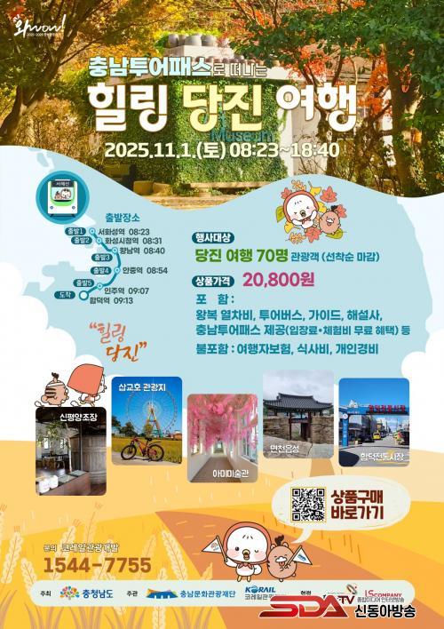 [½Åµ¿¾Æ¹æ¼Û=ÀÌÀçö±âÀÚ] ´çÁø½Ã(½ÃÀå ¿À¼ºÈ¯)´Â ÃæÃ»³²µµ, Ãæ³²¹®È­°ü±¤Àç´Ü, ÄÚ·¹Àϰü±¤°³¹ß°ú Çù·ÂÇØ Ãæ³²Åõ¾îÆÐ½º·Î ¶°³ª´Â¡®Èú¸µ ´çÁø ¿©Ç࡯ 2Â÷ ÇÁ·Î±×·¥À» ¿À´Â 11¿ù 1ÀÏ ¿î¿µÇÑ´Ù°í 14ÀÏ ¹àÇû´Ù.