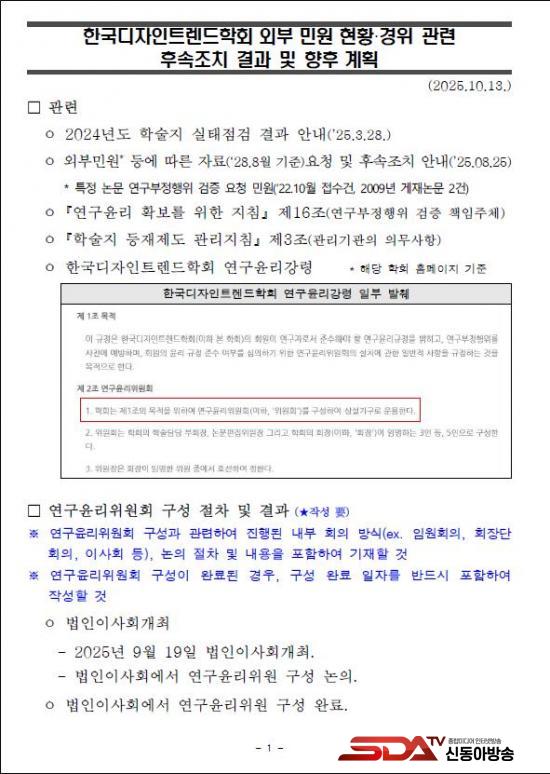 ¡à ¹é½Â¾ÆÀÇ¿ø½ÇÀº ±è°ÇÈñ¾¾ÀÇ À§Á¶‧Ç¥Àý ÀÇȤÀ» ½ÇÀº ÇмúÁö(µðÀÚÀÎÆ÷·³)ÀÇ Çѱ¹µðÀÚÀÎÆ®·»µåÇÐȸ(ÀÌÇÏ ÇÐȸ)°¡ Áö³ 9¿ù 19ÀÏ ¿¬±¸À±¸®À§¿øÈ¸ ±¸¼ºÀ» ¸¶Ä£ ÈÄ, ¡°10¿ù ÁßÀ¸·Î ¿¬±¸À±¸®À§¿øÈ¸¸¦ °³ÃÖÇØ ±ÔÁ¤¿¡ µû¶ó Á¶Ä¡ÇÒ ¿¹Á¤¡±À̶ó°í Çѱ¹¿¬±¸Àç´Ü¿¡ ȸ½ÅÇÑ »ç½ÇÀ» È®ÀÎÇß´Ù. (÷ºÎ1)