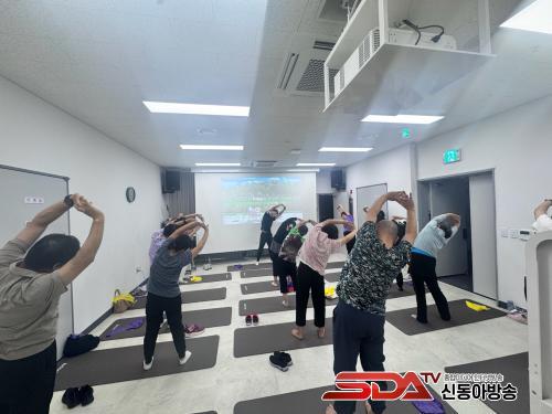 Áö¿ª ¾î¸£½ÅµéÀÌ °­»çÀÇ ½Ã¹ü¿¡ µû¶ó ½ºÆ®·¹ÄªÀ» Çϰí ÀÖ´Ù.