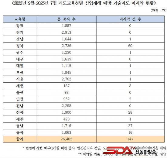 ¡à ±¹È¸ ±³À°À§¿øÈ¸ ¹é½Â¾Æ ÀÇ¿ø(´õºÒ¾î¹ÎÁÖ´ç, ºñ·Ê´ëÇ¥)ÀÌ Àü±¹ ½Ã¡¤µµ±³À°Ã»À¸·ÎºÎÅÍ Á¦Ãâ¹ÞÀº ±¹Á¤°¨»ç ÀÚ·á¿¡ µû¸£¸é, 2022³âºÎÅÍ 2025³â 7¿ù±îÁö ±³À°Ã» ¹ßÁÖ °ø»çÇöÀå¿¡¼­ ¹ß»ýÇÑ »ê¾÷ÀçÇØ´Â ÃÑ 968°ÇÀ¸·Î Áý°èµÆ´Ù. ÀÌ Áß »ç¸Á»ç°í´Â 24°Ç¿¡ ´ÞÇß´Ù.