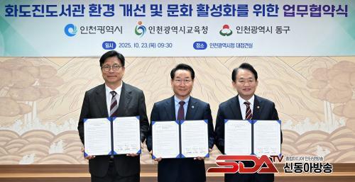 [½Åµ¿¾Æ¹æ¼Û ÀÎõ=À±¹Î½Ä±âÀÚ]ÀÎõ±¤¿ª½Ã(½ÃÀå À¯Á¤º¹)´Â ÀÎõ±¤¿ª½Ã±³À°Ã»(±³À°°¨ µµ¼ºÈÆ), ÀÎõ±¤¿ª½Ã µ¿±¸(±¸Ã»Àå ±èÂùÁø)¿Í ÇÔ²² 10¿ù 23ÀÏ ÀÎõ½Ãû¿¡¼­ ¡®È­µµÁøµµ¼­°ü Áõ¡¤°³Ãà ÃßÁøÀ» À§ÇÑ ¾÷¹«Çù¾à¡¯À» ü°áÇß´Ù°í ¹àÇû´Ù.