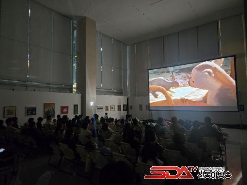 °°Àº ³¯ Àú³á 7½Ã¿¡ ÁøÇàµÈ 'ã¾Æ°¡´Â ´ä½Ê¸®½Ã³×¸¶ <¿µÈ­°¡ ÀÖ´Â Àú³á, µµ½ÃÀÇ ½°ÅÍ>'´Â »çÀü ½ÅûÀ¸·Î ¸ðÁýÇÑ 100¼®ÀÌ ¼±Âø¼ø ¸¶°¨µÇ¸ç Àü¼® ¸ÅÁøÀ» ±â·ÏÇß´Ù. À̳¯ »ó¿µÈ¸¿¡´Â ¹ÌÃëÇÐ ¾Æµ¿ ¹× ÃʵîÇлý ÀúÇгâ ÀÚ³àÀÇ ¼ÕÀ» Àâ°í ¿Â 3~4ÀÎ °¡Á· ´ÜÀ§ °ü¶÷°´ÀÌ ÁÖ¸¦ ÀÌ·ð´Ù. »ó¿µÀÛÀÎ ¾ÆÄ«µ¥¹Ì ¼ö»óÀÛ <Ç÷οì(FLOW)>´Â ´ë»ç°¡ ¾ø´Â '³í¹ö¹ú(non-verbal)' ¾Ö´Ï¸ÞÀ̼ÇÀ¸·Î, °¡Á· °ü°´µéÀÇ ³ôÀº ¸ôÀÔµµ¸¦ À̲ø¾î³Â´Ù.