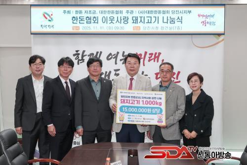 [½Åµ¿¾Æ¹æ¼Û=ÀÌÀçö±âÀÚ] ´ëÇÑÇѵ·Çùȸ ´çÁø½ÃÁöºÎ(ÁöºÎÀå À±ÀÎÇö)°¡ ´çÁø½Ã¿¡ µÅÁö°í±â 1,000kg(1,500¸¸ ¿ø »ó´ç)À» ±âºÎÇÏ¸ç ¡®³ª´® Ãà»ê¡¯ÀÇ ¶æÀ» ½ÇõÇß´Ù.