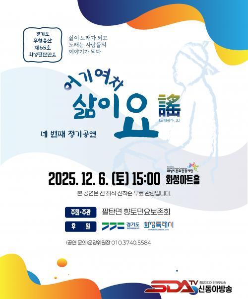 [½Åµ¿¾Æ¹æ¼Û=ÀÌÀçö±âÀÚ] °æ±âµµ ¹«ÇüÀ¯»ê Á¦65È£ ¡®È­¼ºÆÈź¹Î¿ä¡¯ÀÇ ÀüÅëÀ» À̾°í ÀÖ´Â ÆÈź¸éÇâÅä¹Î¿äº¸Á¸È¸ Á¦4ȸ Á¤±â°ø¿¬ÀÌ ¿À´Â 12¿ù 6ÀÏ ¿ÀÈÄ 3½Ã À¯¾Ø¾ÆÀ̼¾ÅÍ È­¼º¾ÆÆ®È¦¿¡¼­ °³ÃֵȴÙ.