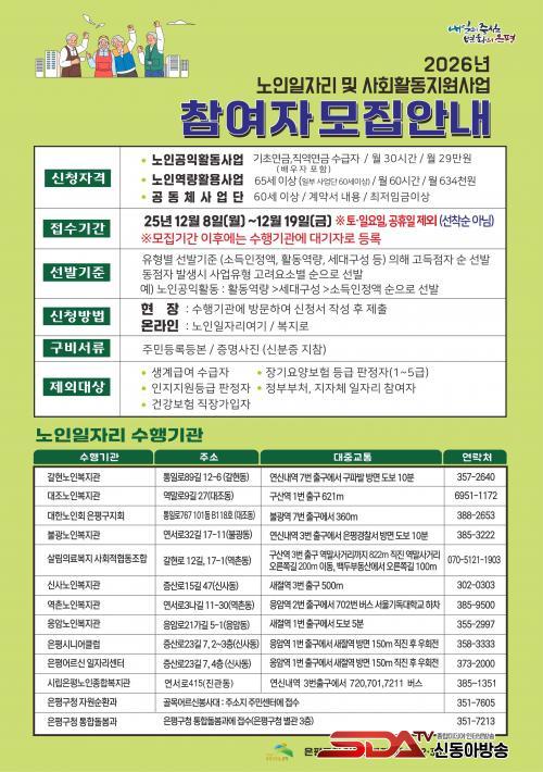 ÀºÆò±¸, 2026³â ³ëÀÎÀÏÀÚ¸®»ç¾÷ Âü¿©ÀÚ ¸ðÁý
