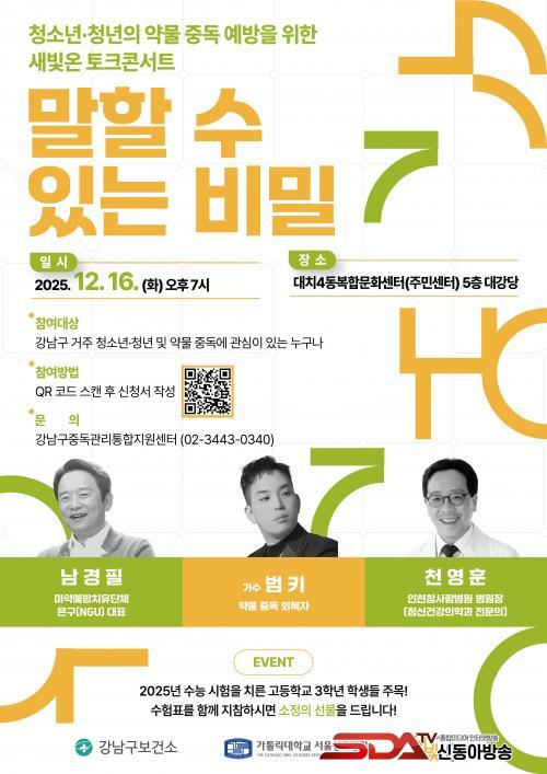 [½Åµ¿¾Æ¹æ¼Û °­³²±¸=À̽ŵ¿±âÀÚ] ²ÞÀÌ ¸ðÀÌ´Â µµ½Ã, ¹Ì·¡¸¦ ±×¸®´Â °­³²±¸°¡ ¿À´Â 12¿ù 16ÀÏ ¿ÀÈÄ 7½Ã ´ëÄ¡4µ¿º¹ÇÕ¹®È­¼¾ÅÍ 5Ãþ ´ë°­´ç¿¡¼­ û¼Ò³â°ú û³â, Çкθ𸦠´ë»óÀ¸·Î ÇÑ ¾à¹° Áßµ¶ ¿¹¹æ ÅäÅ© Äܼ­Æ® ¡®¸»ÇÒ ¼ö ÀÖ´Â ºñ¹Ð¡¯À» °³ÃÖÇÑ´Ù.