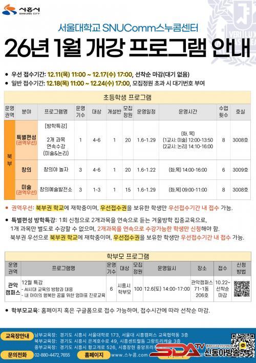 ½º´©ÄÞ ¹æÇРƯ° ¹× 1¿ù °³° ÇÁ·Î±×·¥ ¼ö°»ý ¸ðÁýÀº ½º´©ÄÞ ´©¸®Áý(www.½º´©ÄÞ.com)¿¡¼ ÁøÇàµÈ´Ù. ¿¬ 1ȸ Á¦°øµÇ´Â ¿ì¼±Á¢¼ö±Ç º¸À¯ÀÚ´Â 12¿ù 11ÀϺÎÅÍ, ÀÏ¹Ý Á¢¼ö´Â 12¿ù 18ÀϺÎÅÍ ½ÃÀ۵ȴÙ.