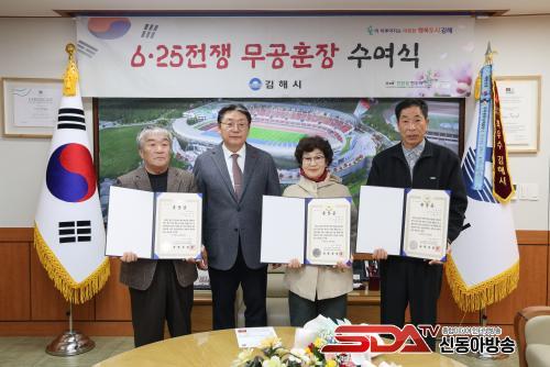 [½Åµ¿¾Æ¹æ¼Û °æ³²±èÇØ=³²±Ã¿µ±â±âÀÚ] ±èÇØ½Ã´Â 10ÀÏ, 6¡¤25ÀüÀï¿¡ ÂüÀüÇÏ¿© ÇõÇõÇÑ Àü°øÀ» ¼¼¿üÀ½¿¡µµ ÀüÈÄ È¥¶õÇÑ »óȲÀ¸·Î ÀÎÇØ ±×µ¿¾È ÈÆÀåÀ» ¹ÞÁö ¸øÇß´ø ͺ±è¼º¼ö ÇÏ»ç, ͺ±èµ¿ÁØ»óº´, ͺÀ¯°æÃá »óº´ À¯Á·¿¡°Ô ±¹¹æºÎÀå°üÀ» ´ë½ÅÇØ È­¶û¹«°øÈÆÀåÀ» Àü¼öÇß´Ù.