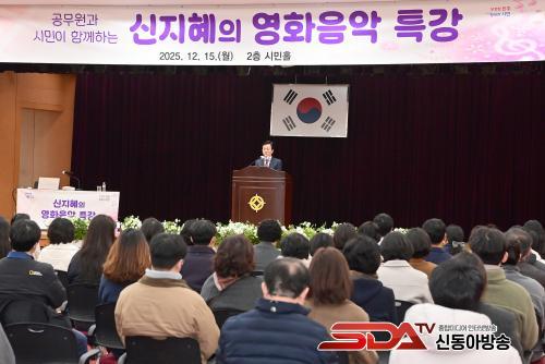 Ư°­¿¡ ¾Õ¼­ Á¶±ÔÀÏ ÁøÁÖ½ÃÀåÀº ¡°¿À·£ ±â°£ ¿µÈ­À½¾ÇÀ» ¿¬±¸ÇÏ°í ¼Ò°³ÇØ ¿Â ½ÅÁöÇý °­»ç´ÔÀÇ °­Àǰ¡ ¿©·¯ºÐ²² ±íÀº °¨µ¿°ú ¿©¿îÀ» ¼±»çÇÒ °ÍÀ¸·Î ±â´ëÇÑ´Ù¡±¸é¼­ ¡°À̹ø Ư°­À» ÅëÇØ ½Ã¹Î°ú °ø¹«¿øµéÀÌ ¿µÈ­À½¾ÇÀ» ÅëÇØ È޽İú °¨¼ºÀ» ³ª´©°í, ÀÏ»ó ¼Ó¿¡¼­ ¹®È­¸¦ ÇâÀ¯ÇÏ´Â ÀÇ¹Ì ÀÖ´Â ½Ã°£ÀÌ µÇ±â¸¦ ±â´ëÇÑ´Ù¡±°í ¹àÇû´Ù.