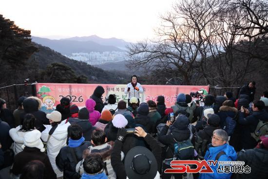 [½Åµ¿¾Æ¹æ¼Û µµºÀ±¸=À̽ŵ¿±âÀÚ] ¡®ºÓÀº ¸»ÀÇ ÇØ¡¯ º´¿À³â(ܰçíÒ´) »õÇØ°¡ ¹à¾Ò´Ù. 2026³â ù³¯ÀÎ 1¿ù 1ÀÏ 500¿© ¸íÀÇ ±¸¹ÎÀº ÀÏÃâÀ» º¸±â À§ÇØ µµºÀ»êÀ» ã¾Ò´Ù. À̳¯ ¼­¿ï µµºÀ±¸´Â µµºÀ»ê õÃà»ç¿¡¼­ ÇÑ ÇØ ¼Ò¸ÁÀ» ±â¿øÇÏ´Â ÇØ¸ÂÀÌ Çà»ç¸¦ °³ÃÖÇß´Ù. Çà»ç¿¡¼­´Â ½ÄÀü°ø¿¬, »õÇØ±â¿ø, Ä«¿îÆ®´Ù¿î, ¸¸¼¼»ïâ µîÀÌ ÁøÇàµÆ´Ù.
