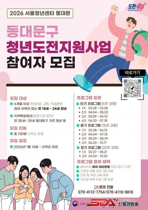 [½Åµ¿¾Æ¹æ¼Û µ¿´ë¹®±¸=À̽ŵ¿±âÀÚ] ¼­¿ï µ¿´ë¹®±¸´Â ±¸Á÷À» Àá½Ã ¸ØÃá û³âµéÀÌ ´Ù½Ã ÀÏ»ó°ú ³ëµ¿½ÃÀåÀ¸·Î µ¹¾Æ¿Ã ¼ö ÀÖµµ·Ï ¡®2026³â û³âµµÀüÁö¿ø»ç¾÷¡¯ Âü¿©ÀÚ¸¦ ¸ðÁý ÁßÀ̶ó°í ¹àÇû´Ù.