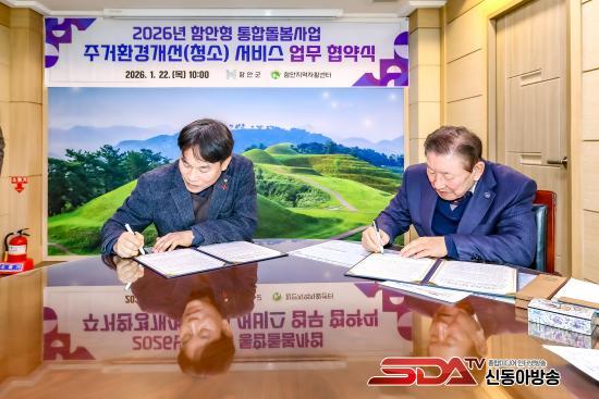 [½Åµ¿¾Æ¹æ¼Û °æ³²ÇÔ¾È=À̽ŵ¿±âÀÚ] ÇԾȱºÀº Áö³­ 22ÀÏ ÇÔ¾ÈÁö¿ªÀÚȰ¼¾ÅÍ ÀÌ¿¥(EM)ȯ°æ»ç¾÷´Ü°ú ¡®2026³â ÇÔ¾ÈÇü ÅëÇÕµ¹º½»ç¾÷ ÁÖ°Åȯ°æ°³¼±(û¼Ò) ¼­ºñ½º¡¯ÀÇ ¿øÈ°ÇÑ ÃßÁøÀ» À§ÇÑ ¾÷¹«Çù¾àÀ» ü°áÇß´Ù°í ¹àÇû´Ù.