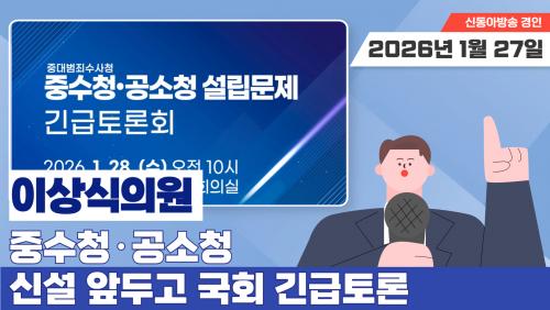 ´õºÒ¾î¹ÎÁÖ´ç ÀÌ»ó½Ä ÀÇ¿ø(°æ±â ¿ëÀΰ©)Àº ¿À´Â 28ÀÏ ¿ÀÀü 10½Ã ±¹È¸ ÀÇ¿øÈ¸°ü Á¦8°£´ãȸÀǽǿ¡¼ ¡®Áß¼öû¡¤°ø¼Òû ¹ý¾È ±ä±ÞÅä·Ðȸ¡¯¸¦ °³ÃÖÇÑ´Ù°í ¹àÇû´Ù. À̹ø Åä·Ðȸ´Â À§¼º°ï, ÀÌÇØ½Ä, ±ÇÄ¥½Â, À̱¤Èñ, ÀÌÀç°ü ÀÇ¿øÀÌ °øµ¿ÁÖÃÖ·Î Âü¿©ÇÑ´Ù.