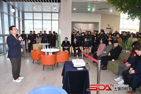 ÇöÆÇ Á¦¸·½Ä¿¡¼´Â Á¾ÇÕº¹ÁöŸ¿î 1Ãþ ·Îºñ Á¤¹®¿¡ ¼³Ä¡µÈ ÇöÆÇÀÌ °ø°³µÇ¸ç Çϳ² ±³À° ÀÚÄ¡ ½Ã´ëÀÇ °³¸·À» ¾Ë·È´Ù. Á¦¸·½Ä Á÷ÈÄ Âü¼®ÀÚµéÀº ½Å¼³ÃßÁø´ÜÀÌ ½Ç¹«¸¦ ¼öÇàÇÒ 6ÃþÀ¸·Î À̵¿ÇØ ½Ã¼³ ¶ó¿îµùÀ» ÁøÇàÇϸç Çϳ² ±³À°ÀÇ ¹Ì·¡°¡ ±×·ÁÁú ÇöÀåÀ» Á÷Á¢ »ìÆñ´Ù.