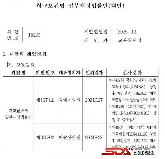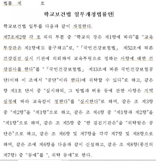 [½Åµ¿¾Æ¹æ¼Û ÀÎõ=À±¹Î½Ä±âÀÚ]¡à ¹é½Â¾Æ ´õºÒ¾î¹ÎÁÖ´ç ÀÇ¿øÀÌ ´ëÇ¥¹ßÀÇÇÑ ¡¸Çб³º¸°Ç¹ý¡¹ ÀϺΰ³Á¤¹ý·ü¾ÈÀÌ ±¹È¸¸¦ Åë°úÇß´Ù. À̹ø °³Á¤¾ÈÀº ±¹°¡ »ý¾ÖÁֱ⺰ °Ç°­°ËÁøÀ» Àü´ãÇÏ´Â ±¹¹Î°Ç°­º¸Çè°ø´Ü¿¡ Çлý °Ç°­°ËÁøÀ» À§Å¹ÇÒ ¼ö ÀÖµµ·Ï ¹ýÀû ±Ù°Å¸¦ ¸¶·ÃÇÑ °ÍÀÌ ÇÙ½ÉÀÌ´Ù.
