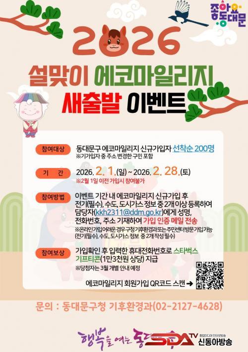 [½Åµ¿¾Æ¹æ¼Û µ¿´ë¹®±¸=À̽ŵ¿±âÀÚ] µ¿´ë¹®±¸°¡ ¡¸¼³¸ÂÀÌ ¿¡ÄÚ¸¶Àϸ®Áö »õÃâ¹ß À̺¥Æ®¡¹¸¦ 2¿ù 1ÀϺÎÅÍ 2¿ù 28ÀϱîÁö ÇÑ ´Þ°£ ¿î¿µÇÑ´Ù. ¼³ ¸íÀýÀ» ¸Â¾Æ ±¸¹ÎÀÇ ¿¡³ÊÁö Àý¾à ½ÇõÀ» È®»êÇÏ°í ¿¡ÄÚ¸¶Àϸ®Áö Âü¿©¸¦ Ȱ¼ºÈ­Çϱâ À§ÇÔÀÌ´Ù.