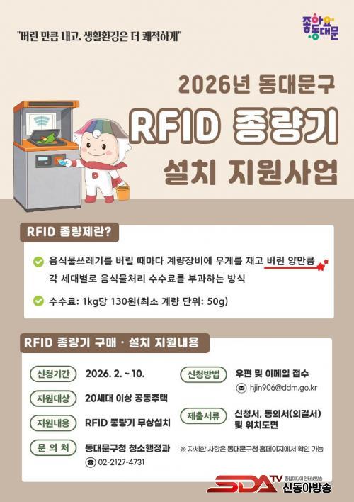 [½Åµ¿¾Æ¹æ¼Û µ¿´ë¹®±¸=À̽ŵ¿±âÀÚ] µ¿´ë¹®±¸´Â À½½Ä¹°·ù Æó±â¹°À» ÁÙÀ̰í ÄèÀûÇÑ ÁÖ°Åȯ°æÀ» ¸¸µé±â À§ÇØ ¡®2026³â °øµ¿ÁÖÅà À½½Ä¹° ¾²·¹±â RFID Á¾·®±â ¼³Ä¡ Áö¿ø »ç¾÷¡¯À» È®´ë ÃßÁøÇÑ´Ù.