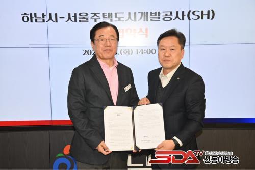 3ÀÏ ¿ÀÈÄ Çϳ²½Ã¿Í ¼­¿ïÁÖÅõµ½Ã°³¹ß°ø»ç(SH)ÀÇ ÀåÁöõ ¹ß¿øÁö µðÀÚÀÎÆ¯È­»ç¾÷ ÃßÁøÀ» À§ÇÑ Çù¾à½Ä¿¡¼­ (ÁÂ)ÀÌÇöÀç Çϳ²½ÃÀå°ú (¿ì)SH°ø»ç ±è¿µ¹è µµ½Ã°³¹ßº»ºÎÀåÀÌ Çù¾à¼­¸¦ µé°í ±â³ä»çÁøÀ» ÃÔ¿µÇϰí ÀÖ´Ù.