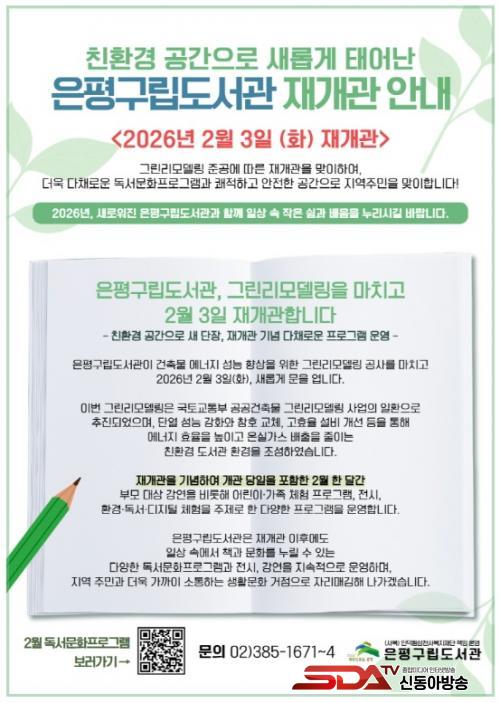 [½Åµ¿¾Æ¹æ¼Û ÀºÆò±¸=À̽ŵ¿±âÀÚ] ¼­¿ï ÀºÆò±¸´Â ÀºÆò±¸¸³µµ¼­°üÀÌ ¾à 9°³¿ù°£ÀÇ ±×¸°¸®¸ðµ¨¸µ °ø»ç¸¦ ¸¶Ä¡°í Áö³­ 3ÀÏ Àç°³°üÇß´Ù°í ¹àÇû´Ù.