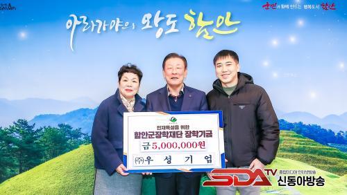 [½Åµ¿¾Æ¹æ¼Û °æ³²ÇÔ¾È=À̽ŵ¿±âÀÚ] ÇԾȱºÀº (ÁÖ)¿ì¼º±â¾÷ÀÌ Áö³­ 9ÀÏ ÇԾȱº ÀåÇÐÀç´Ü¿¡ Áö¿ªÀÎÀçÀ°¼ºÀ» À§ÇÑ ÀåÇбâ±Ý 500¸¸ ¿øÀ» ±âŹÇß´Ù°í ¹àÇû´Ù.