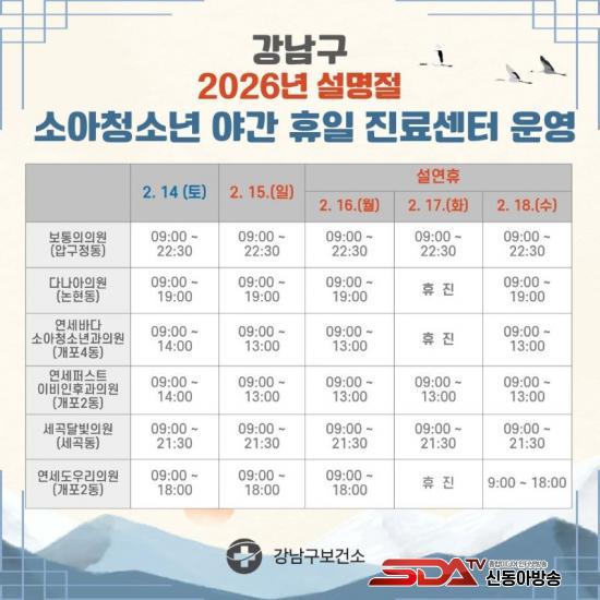 ¼Ò¾ÆÃ»¼Ò³âÀ» À§ÇÑ ¾ß°£¡¤ÈÞÀÏ Áø·á¼¾Å͵µ ¿î¿µÇÑ´Ù. 2023³â Àü±¹ ÃÖÃÊ·Î ½ÃÀÛÇÑ °­³²±¸ ¼Ò¾ÆÃ»¼Ò³â ¾ß°£¡¤ÈÞÀÏ Áø·á¼¾ÅÍ´Â 4±Ç¿ª 5°÷¿¡¼­ ÆòÀÏ ¾ß°£°ú ÁÖ¸»¡¤°øÈÞÀÏ¿¡µµ Áø·á¸¦ Á¦°øÇϰí ÀÖ´Ù. °©ÀÛ½º·¯¿î ¿­À̳ª ±âħ µîÀ¸·Î ¾ÆÀ̰¡ ¾ÆÇà ¶§ ÀÀ±Þ½Ç¿¡ °¡Áö ¾Ê°íµµ °¡±î¿î °÷¿¡¼­ Áø·á¹ÞÀ» ¼ö ÀÖµµ·Ï µ½´Â ü°è´Ù.