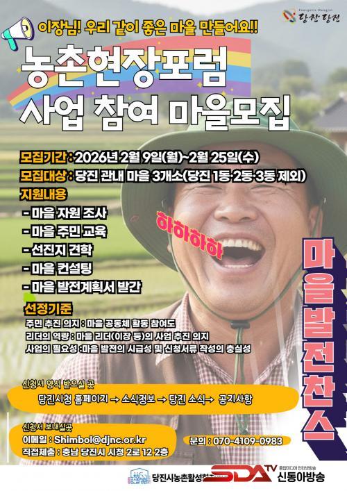 [½Åµ¿¾Æ¹æ¼Û=ÀÌÀçö±âÀÚ] ´çÁø½Ã´Â ¿À´Â 2¿ù 25ÀϱîÁö ÁÖ¹ÎÀÌ ÁÖµµÇØ ¸¶À»ÀÇ ¹Ì·¡¸¦ ¼³°èÇÏ´Â ¡®2026³â ³óÃÌÇöÀåÆ÷·³¡¯¿¡ Âü¿©ÇÒ ¸¶À»À» ¸ðÁýÇÑ´Ù°í 12ÀÏ ¹àÇû´Ù.