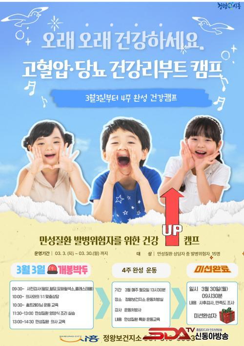 [½Åµ¿¾Æ¹æ¼Û ½ÃÈï½Ã=À̽ŵ¿±âÀÚ] ½ÃÈï½Ã´Â Ç÷¾Ð¤ý´ç´¢¤ýÀÌ»óÁöÁúÇ÷Áõ °æ°è ´Ü°è¿¡ ÀÖ´Â ½Ã¹Î 15¸íÀ» ´ë»óÀ¸·Î ¸¸¼ºÁúȯ ÀÌȯÀ» ¿¹¹æÇϱâ À§ÇÑ ¡®°íÇ÷¾Ð¤ý´ç´¢ °Ç°­ ¸®ºÎÆ® Ä·ÇÁ¡¯¸¦ ¿À´Â 3¿ù 3ÀϺÎÅÍ 4ÁÖ°£ ¿î¿µÇÑ´Ù.