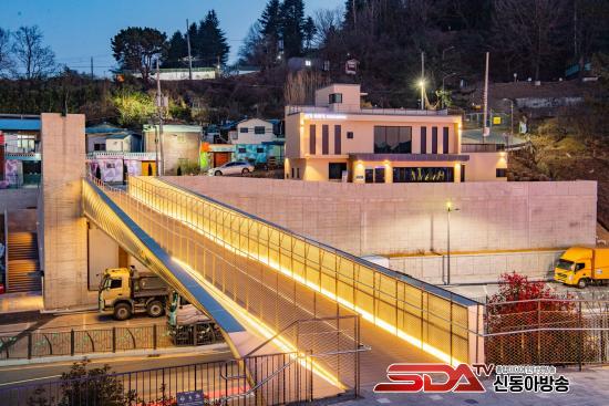 ¼³°è °ø¸ð »ç¾÷À¸·Î ÃßÁøµÈ ¡®ºñ°Å À°±³¡¯´Â µµ·Î µîÀ¸·Î ÀÎÇØ ´ÜÀýµÅ ÀÖ´ø ¡®¼Ò¸ÁÁø»ê À¯µî°ø¿ø¡¯°ú ¡®¸Á°æ°ø¿ø¡¯À» ÇϳªÀÇ º¸ÇàÃàÀ¸·Î ¿¬°áÇß´Ù´Â Á¡¿¡¼ Å« Àǹ̰¡ ÀÖ´Ù. ³Êºñ 5m, ±æÀÌ 40m ±Ô¸ðÀÇ Ã¶°ñ ±¸Á¶¹°·Î Á¶¼ºµÈ ÀÌ À°±³´Â ¼¼·ÃµÈ ¾Ë·ç¹Ì´½ ÆÐ³Î(Panel) ¿ÜÀå°ú µû¶æÇÑ ¸ñÀç µ¦(Deck) ¹Ù´ÚÀ» °®Ãç ½Ã¹Îµé¿¡°Ô ¾ÈÀüÇϰí ÄèÀûÇÑ º¸Çà ȯ°æÀ» Á¦°øÇÑ´Ù.