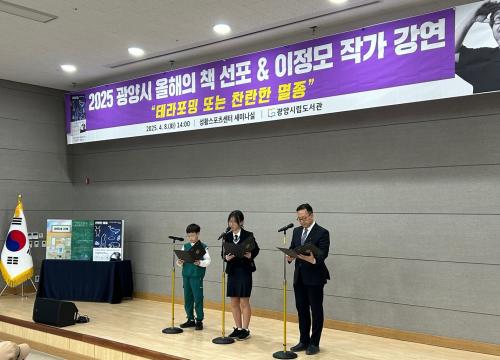 [½Åµ¿¾Æ¹æ¼Û Àü³²±¤¾ç=¹Ú±¤¿Á±âÀÚ]±¤¾ç½Ã´Â Áö³­ 4¿ù 8ÀÏ ¿­¸° ¡®2025 ¿ÃÇØÀÇ Ã¥ ¼±Æ÷ ¹× ÀÛ°¡ÃÊû °­¿¬¡¯ÀÌ ¼ºÈ²¸®¿¡ ¸¶¹«¸®µÆ´Ù°í 9ÀÏ ¹àÇû´Ù. 2025 ±¤¾ç½Ã ¿ÃÇØÀÇ Ã¥Àº ¡ã ¾î¸°ÀÌ µµ¼­ ¡¸¾Æ¹«³× °¡°Ô¡¹(Á¤À¯¼Ò¿µ) ¡ã û¼Ò³â µµ¼­ ¡¸°í¿äÇÑ ¿ì¿¬¡¹(±è¼öºó) ¡ã ¼ºÀΡ¦