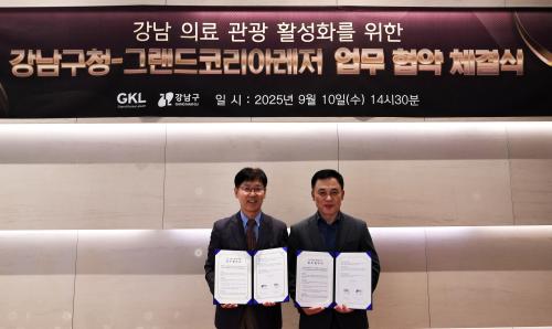 [½Åµ¿¾Æ¹æ¼Û °­³²±¸=À̽ŵ¿±âÀÚ] ²ÞÀÌ ¸ðÀÌ´Â µµ½Ã, ¹Ì·¡¸¦ ±×¸®´Â °­³²±¸°¡ ±×·£µåÄÚ¸®¾Æ·¹Àú(GKL)¿Í 10ÀÏ ¼¼ºì·° ÄÚ¿¢½ºÁ¡¿¡¼­ ÀÇ·á°ü±¤ Ȱ¼ºÈ­¸¦ À§ÇÑ ¾÷¹«Çù¾àÀ» ü°áÇÏ°í ¿Ü±¹ÀΠȯÀÚ À¯Ä¡ È®´ë¿¡ ³ª¼±´Ù. GKLÀº ¿Ü±¹ÀÎ Àü¿ë Ä«Áö³ë ¡®¼¼ºì·°(Seven Luck)¡¯À» ¡¦