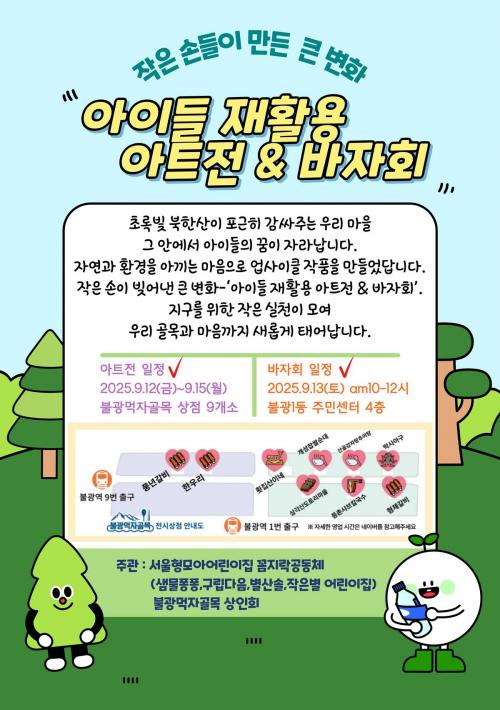 [½Åµ¿¾Æ¹æ¼Û ÀºÆò±¸=À̽ŵ¿±âÀÚ] ¼­¿ï ÀºÆò±¸´Â ºÒ±¤¸ÔÀÚ°ñ¸ñ °ñ¸ñÇü»óÁ¡°¡¿¡¼­ ¿À´Â 12ÀϺÎÅÍ 15ÀϱîÁö ¡®¾ÆÀ̵é ÀçȰ¿ë ¾ÆÆ®Àü & ¹ÙÀÚȸ¡¯¸¦ °³ÃÖÇÑ´Ù°í ¹àÇû´Ù. À̹ø Çà»ç´Â ¼­¿ïÇü¸ð¾Æ¾î¸°ÀÌÁý ²ÄÁö¶ô°øµ¿Ã¼¿Í ºÒ±¤¸ÔÀÚ°ñ¸ñ »óÀÎȸ°¡ ÇÔ²² ¸¶·ÃÇßÀ¸¸ç, Áö¿ª »ó±Ç¡¦