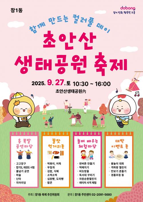 [½Åµ¿¾Æ¹æ¼Û µµºÀ±¸=À̽ŵ¿±âÀÚ] ¼­¿ï µµºÀ±¸ â1µ¿ÀÌ 9¿ù 27ÀÏ ÃÊ¾È»ê »ýŰø¿ø¿¡¼­ 'ÇÔ²² ¸¸µå´Â Ä÷¯Ç® µ¥ÀÌ ÃÊ¾È»ê »ýŰø¿ø ÃàÁ¦'¸¦ °³ÃÖÇÑ´Ù. â1µ¿ ÃàÁ¦ÃßÁøÀ§¿øÈ¸°¡ ÁÖÃÖÇÏ´Â À̹ø ÃàÁ¦¿¡¼­´Â °ø¿¬, ¸Ô°Å¸®, üÇè µî ´Ù¾çÇÑ º¼°Å¸®, Áñ±æ°Å¸®°¡ ¸¶·ÃµÈ´Ù. ¡¦