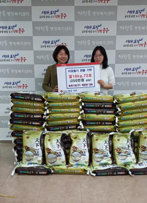 [½Åµ¿¾Æ¹æ¼Û ÀÎõ=À±¹Î½Ä±âÀÚ] ÀÎõ Áß±¸ °³Ç×µ¿Àº Ãß¼®À» ¸ÂÀÌÇØ ÃÖ±Ù µ¿È­±â¾÷¢ß(䱤º´ ´ëÇ¥)¿¡¼­ °³Ç×µ¿ Àú¼Òµæ Ãë¾à°èÃþÀ» À§ÇØ ½Ò 720kg(250¸¸ ¿ø »ó´ç)À» ±âŹÇß´Ù°í 10ÀÏ ¹àÇû´Ù. µ¿È­±â¾÷¢ßÀº 11³â°£ Áö¼ÓÀûÀ¸·Î ¸íÀý¿¡ °³Ç×µ¿ Àú¼Òµæ ÁÖ¹ÎÀ» À§ÇÑ ¼º±Ý°ú¡¦
