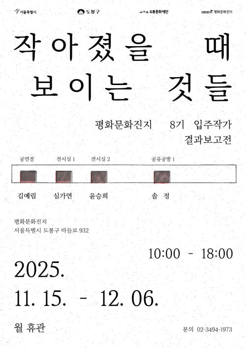 [½Åµ¿¾Æ¹æ¼Û µµºÀ±¸=À̽ŵ¿±âÀÚ] ¼­¿ï µµºÀ±¸ µµºÀ¹®È­Àç´Ü ÆòÈ­¹®È­ÁøÁö°¡ 12¿ù 6ÀϱîÁö ÆòÈ­¹®È­ÁøÁö ÀÏ´ë¿¡¼­ 8±â ÀÔÁÖÀÛ°¡ °á°úº¸°í Àü½Ãȸ¸¦ °³ÃÖÇÑ´Ù. À̹ø Àü½Ã¿¡´Â ±è¿¹¸², ½É°¡¿¬, À±½ÂÈñ, Á¤¼Ö ÀÛ°¡°¡ Âü¿©Çß´Ù. ÀÛ°¡µéÀº ¿ÃÇØ 1¿ù ÆòÈ­¹®È­ÁøÁö¿¡ ÀÔÁÖÇØ ¡¦