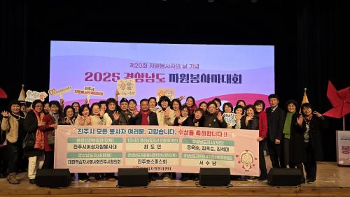[½Åµ¿¾Æ¹æ¼Û °æ³²ÁøÁÖ=±è¸í¼ö±âÀÚ] ÁøÁֽô ÁøÁֽÿ©¼ºÀÚ¿øºÀ»ç´ë°¡ Áö³­ 5ÀÏ¡®2025 ´ëÇѹα¹ ÀÚ¿øºÀ»ç´ë»ó¡¯¿¡¼­ ÇàÁ¤¾ÈÀüºÎ Àå°ü»óÀ» ¼ö»óÇß´Ù°í ¹àÇû´Ù. ¡®´ëÇѹα¹ ÀÚ¿øºÀ»ç´ë»ó¡¯Àº ¿À·£ ±â°£ Áö¿ª»çȸ °÷°÷¿¡¼­ ¹¬¹¬È÷ ºÀ»çÇÏ¸ç ³ª´® ¹®È­¸¦ È®»êÇØ ¿Â °³ÀΡ¦
