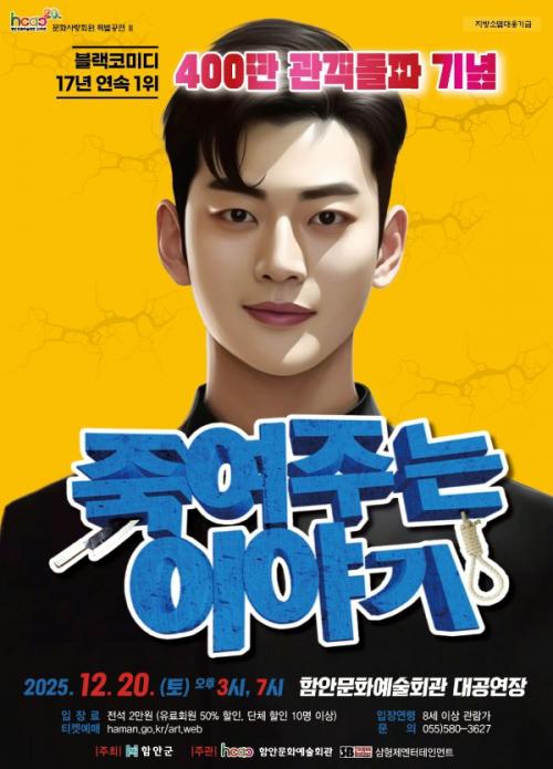 [½Åµ¿¾Æ¹æ¼Û °æ³²ÇÔ¾È=À̽ŵ¿±âÀÚ] ´ëÇзΠ´ëÇ¥ »ó½Ã °ø¿¬ ÀÛǰÀÌÀÚ 17³â°£ ²ÙÁØÇÑ »ç¶ûÀ» ¹Þ¾Æ¿Â ¿¬±Ø ¡®Á׿©ÁÖ´Â À̾߱⡯°¡ ¿À´Â 20ÀÏ ¿ÀÈÄ 3½Ã¿Í 7½Ã, ÇԾȹ®È­¿¹¼úȸ°ü ´ë°ø¿¬Àå¿¡¼­ ÇÔ¾È °ü°´µéÀ» ¸¸³­´Ù. ÇԾȹ®È­¿¹¼úȸ°üÀº ´Ü¼øÇÑ °ø¿¬ÀåÀÌ ¾Æ´Ñ Áö¿ª ÁֹΡ¦