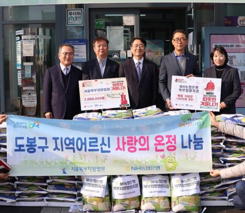 [½Åµ¿¾Æ¹æ¼Û µµºÀ±¸=À̽ŵ¿±âÀÚ] ¼­¿ï µµºÀ±¸ µµºÀ1µ¿Àº Áö³­ 12¿ù 11ÀÏ ¼­¿ïºÏºÎÁö¹æ¹ý¿ø(¹ý¿øÀå À±»óµµ)°ú NH³óÇùÀºÇà ºÏºÎÁö¹æ¹ý¿øÁöÁ¡(ÁöÁ¡Àå ÃÖâÇå)À¸·ÎºÎÅÍ °¢°¢ ÀÌ¿ôµ½±â ¼º±Ý°ú ¼ºÇ°À» Àü´Þ¹Þ¾Ò´Ù°í ¹àÇû´Ù. ¼­¿ïºÏºÎÁö¹æ¹ý¿øÀº À̳¯ ¼º±Ý 200¸¸ ¿øÀ», NH³ó¡¦