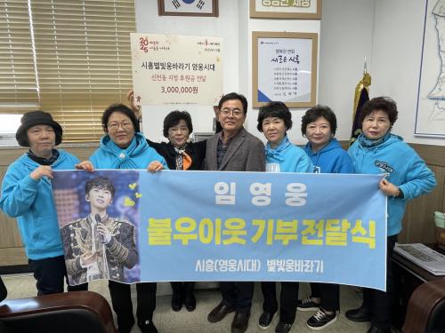 [½Åµ¿¾Æ¹æ¼Û ½ÃÈï½Ã=À̽ŵ¿±âÀÚ] ½ÃÈï½Ã ½Åõµ¿ ÇàÁ¤º¹Áö¼¾ÅÍ¿¡ Áö³­ 12¿ù 17ÀÏ Æ®·ÎÆ® °¡¼ö ÀÓ¿µ¿õÀÇ ½ÃÈï ÆÒŬ·´ÀÎ ¡®½ÃÈﺰºû¿õ¹Ù¶ó±â ¿µ¿õ½Ã´ë¡¯°¡ ¹æ¹®ÇØ ¿¬¸»À» ¸Â¾Æ Áö¿ª Àú¼Òµæ Ãë¾à°èÃþÀÇ °Ü¿ï³ª±â Áö¿øÀ» À§ÇÑ ÈÄ¿ø±Ý 300¸¸ ¿øÀ» Àü´ÞÇß´Ù. ¡®½ÃÈﺰºû¿õ¹Ù¡¦