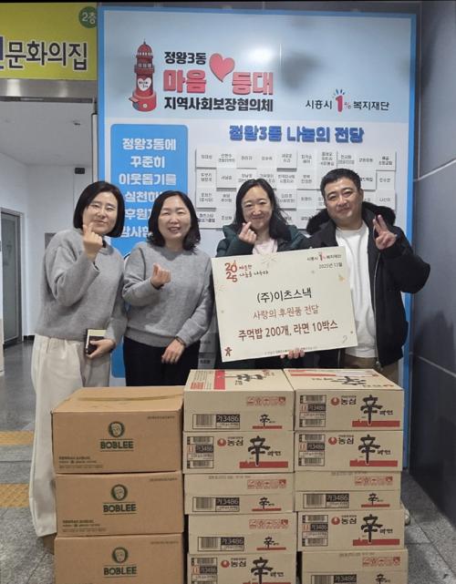 [½Åµ¿¾Æ¹æ¼Û ½ÃÈï½Ã=À̽ŵ¿±âÀÚ] ¢ßÀÌÃ÷½º³¼Àº Áö³­ 12¿ù 19ÀÏ Á¤¿Õ3µ¿ Áö¿ª»çȸº¸ÀåÇùÀÇü¸¦ ã¾Æ Àú¼Òµæ °á½Ä ¿ì·Á °¡±¸¸¦ À§ÇÑ ÁÖ¸Ô¹ä 200°³¿Í ¶ó¸é 10»óÀÚ¸¦ Àü´ÞÇß´Ù. ¢ßÀÌÃ÷½º³¼Àº °£½Ä ¹è¼Û Àü¹® À¯Åë¾÷ü·Î, ¸ÅÀÏ ´Ù¾çÇÑ °£½ÄÀ» ÇÕ¸®ÀûÀÎ °¡°Ý¿¡ Á¦°øÇϰí ÀÖ¡¦