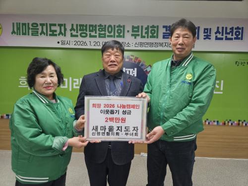 [½Åµ¿¾Æ¹æ¼Û=ÀÌÀçö±âÀÚ] ´çÁø½Ã´Â ´çÁø½Ã »õ¸¶À»ÁöµµÀÚ ½ÅÆò¸é ÇùÀÇȸ‧ºÎ³àȸ(ÇùÀÇȸÀå Àθí½Ä, ºÎ³àȸÀå ±è°æ¼÷)°¡ 20ÀÏ Èñ¸Á 2026 ÀÌ¿ôµ½±â ³ª´® Ä·ÆäÀο¡ µ¿ÂüÇϱâ À§ÇØ ½ÅÆò¸é ÇàÁ¤º¹Áö¼¾ÅÍ(¸éÀå ÀÌ»ó¹®)¸¦ ¹æ¹®ÇØ ¼º±Ý 200¸¸ ¿øÀ» Àü´ÞÇß´Ù°í ¹àÇû´Ù. ÀÌ¡¦