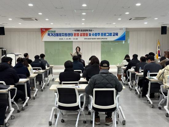 [½Åµ¿¾Æ¹æ¼Û °æ³²ÁøÁÖ=±è¸í¼ö±âÀÚ] ÁøÁֽô 22ÀÏ ³ó¾÷±â¼ú¼¾ÅÍ¿¡¼­ ¡®2026³â ¸Ô°Å¸®ÅëÇÕÁö¿ø¼¾ÅÍ ½ÄÀç·á °ø±Þ¾÷ü ¿î¿µ ¼³¸íȸ¡¯¸¦ °¡Á³´Ù. À̹ø ¼³¸íȸ´Â ÀÛ³â 11¿ù °ø¸ð·Î ÃÖÁ¾ ¼±Á¤µÈ 77°³ ½ÄÀç·á °ø±Þ¾÷üÀÇ ´ëÇ¥ÀÚ¿Í ´ã´çÀÚ µî 100¿© ¸íÀÌ Âü¼®ÇÑ °¡¿îµ¥ ¡ã202¡¦