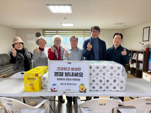 [½Åµ¿¾Æ¹æ¼Û ½ÃÈï½Ã=À̽ŵ¿±âÀÚ] ½ÃÈï½Ã ¹è°ð1µ¿ ÇàÁ¤º¹Áö¼¾ÅÍ´Â ¼³À» ¸Â¾Æ Áö³­ 2¿ù 10ÀÏ °ü³» °æ·Î´ç 11°÷À» ¹æ¹®ÇØ ¾î¸£½ÅÀÌ µû¶æÇÑ ¸íÀýÀ» º¸³¾ ¼ö ÀÖµµ·Ï À§¹®Ç°À» Àü´ÞÇß´Ù. À̳¯ ¹æ¹®¿¡´Â À̼ºÁØ ³ëÀÎȸ ºÐȸÀå, ±è¿µº¹ µ¿ÀåÀÌ ÇÔ²²ÇßÀ¸¸ç, Ä¿ÇÇ, ½Ò ¹× »ýÇÊǰ¡¦