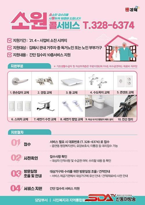 [½Åµ¿¾Æ¹æ¼Û´º½º=±èÁöÀº ±âÀÚ] ±èÇØ½Ã´Â Áö¿ª»çȸ ÅëÇÕµ¹º½ ¼±µµ»ç¾÷ÀÇ ÀÏȯÀ¸·Î, °ü³» ³ëÀΰ¡±¸ ´ë»ó °£´Ü Áý¼ö¸® ¼Ò¿øÄÝ ¼­ºñ½º¸¦ °³½ÃÇÕ´Ï´Ù.