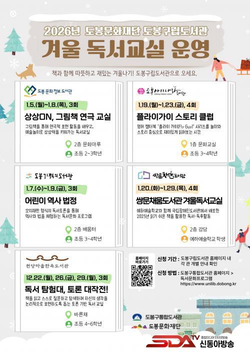 [½Åµ¿¾Æ¹æ¼Û µµºÀ±¸=À̽ŵ¿±âÀÚ] ¼­¿ï µµºÀ±¸ µµºÀ¹®È­Àç´Ü ¼Ò¼Ó ±¸¸³µµ¼­°ü 5°³°üÀÌ ¡®2026³â °Ü¿ï µ¶¼­±³½Ç¡¯À» ¿î¿µÇÑ´Ù.