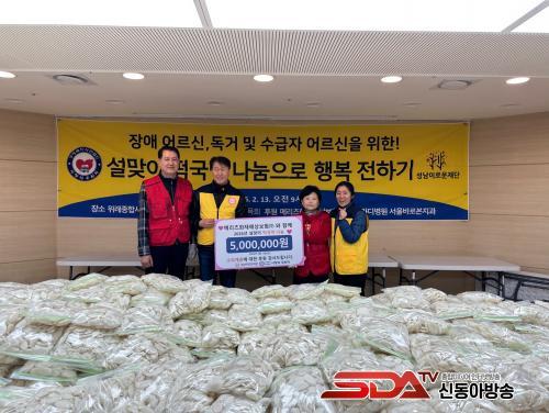 »ç¶ûÀÇ ÈÄ¿øÈ¸´Â 13ÀÏ ¼º³²½Ã ¼öÁ¤±¸ ¼ÒÀç À§·ÊÁ¾ÇÕ»çȸº¹Áö°ü¿¡¼­ Àå¾Ö ¾î¸£½Å°ú Ȧ¸ö ¾î¸£½Å, ±âÃÊ»ýȰ¼ö±ÞÀÚ ¾î¸£½Å µî 1,000¿© °¡±¸¸¦ ´ë»óÀ¸·Î 5ÀκРºÐ·®ÀÇ ¶±±¹ ¶±À» Àü´ÞÇß´Ù. À̹ø¿¡ ÁغñµÈ ¹°·®Àº ÃÑ 5,000¸íºÐ¿¡ ´ÞÇÑ´Ù.